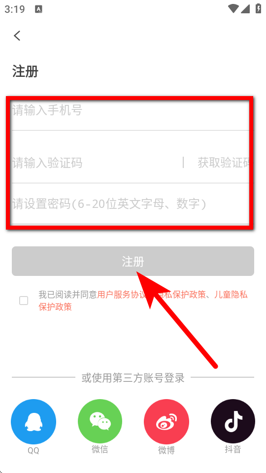 4、在注冊(cè)界面,依次信息后,點(diǎn)擊注冊(cè)按鈕,即可完成賬號(hào)注冊(cè)操作。