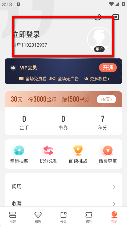 1、在宜搜小說我的頁面,點(diǎn)擊立即登錄區(qū)域,進(jìn)入登錄界面。
