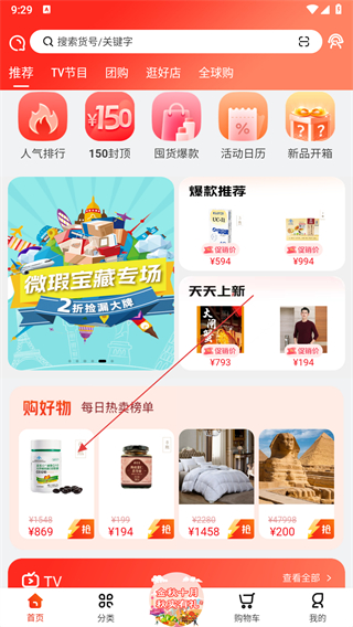 1、打開東方購物APP,在首頁挑選要購買的商品,點擊商品進(jìn)入詳情頁。