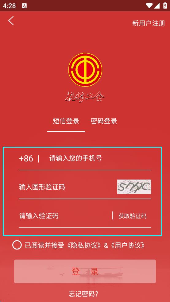 3、在登錄相關(guān)頁(yè)面輸入手機(jī)號(hào)、圖形驗(yàn)證碼,點(diǎn)擊獲取驗(yàn)證碼,輸入驗(yàn)證碼,勾選已閱讀并接受相關(guān)協(xié)議。