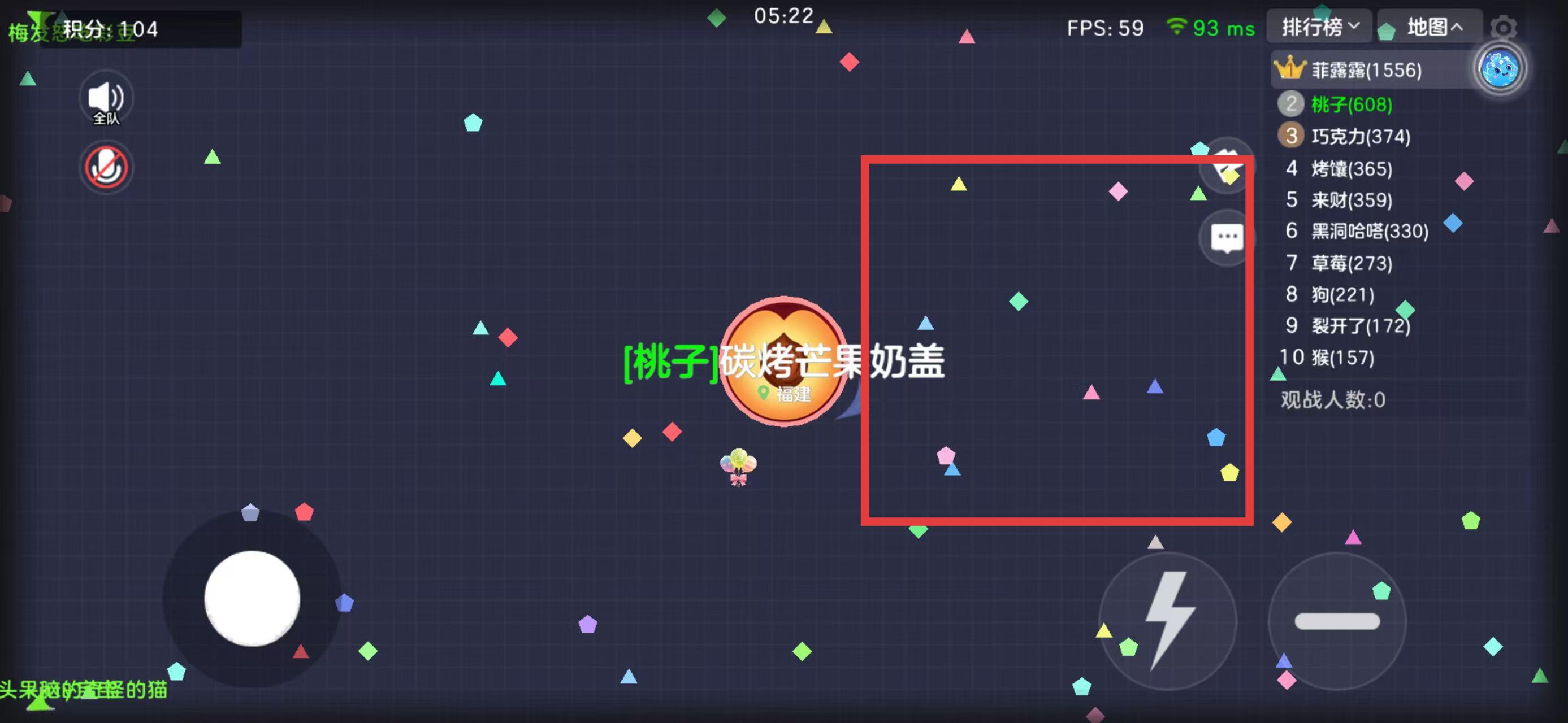 2、在游戲地圖中,留意彩色小方塊,操控球球移動去吞噬它們,積累體積提升積分,讓角色碳烤芒果奶蓋逐漸變大變強。