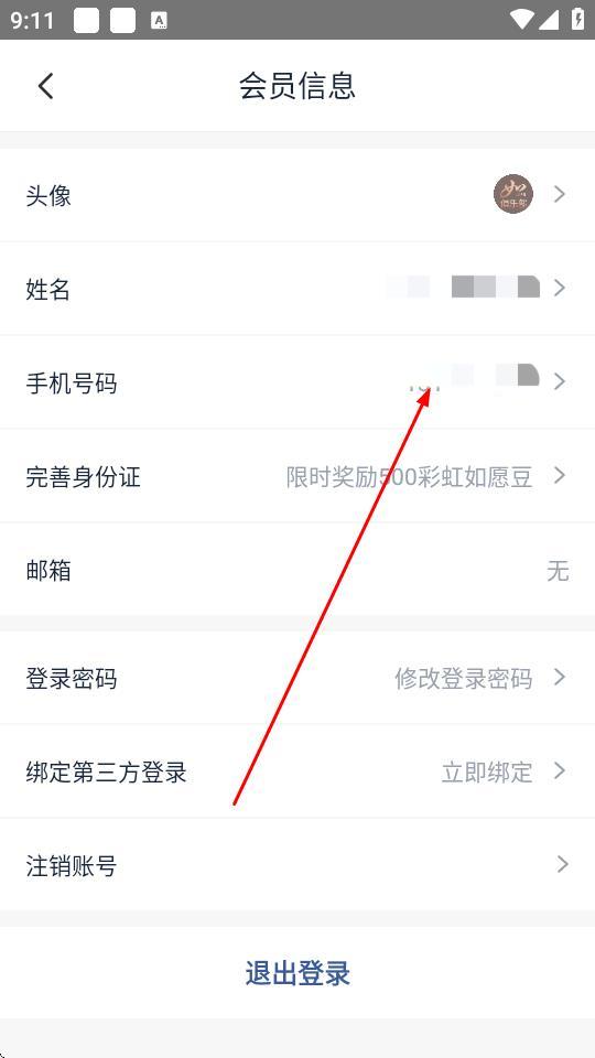 3、進入會員信息頁面后,點擊手機號碼選項。