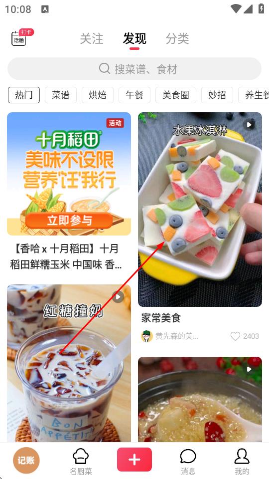 2、在首頁發(fā)現(xiàn)頁面中,找到你想要收藏的美食視頻并點擊進入。