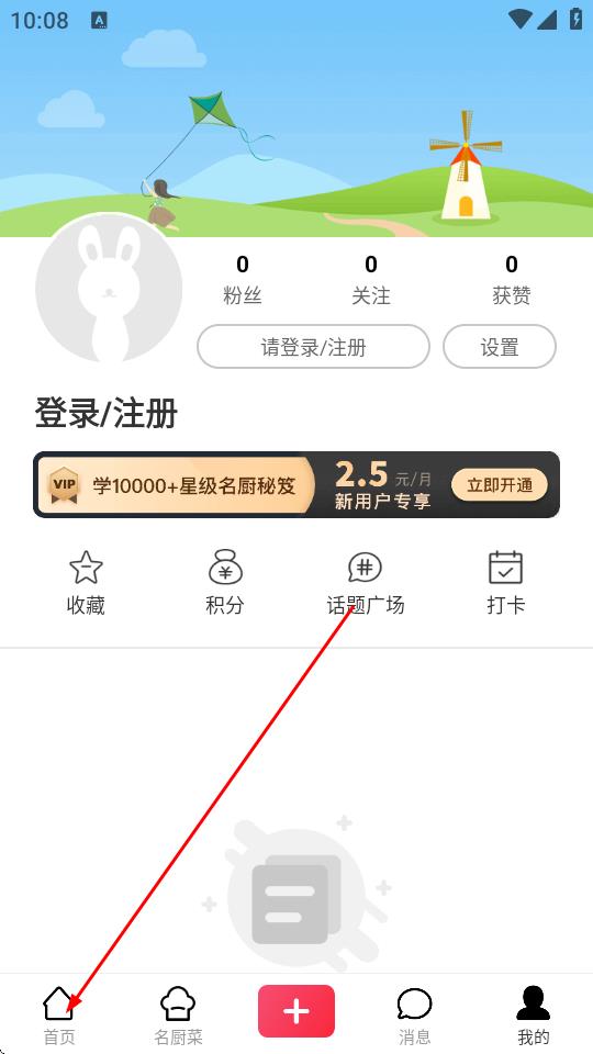 1、打開香哈菜譜APP,點擊底部導(dǎo)航欄的首頁選項。