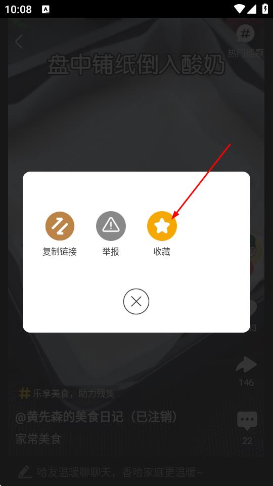 4、在彈出的選項中,點擊收藏按鈕,即可將該視頻收藏。