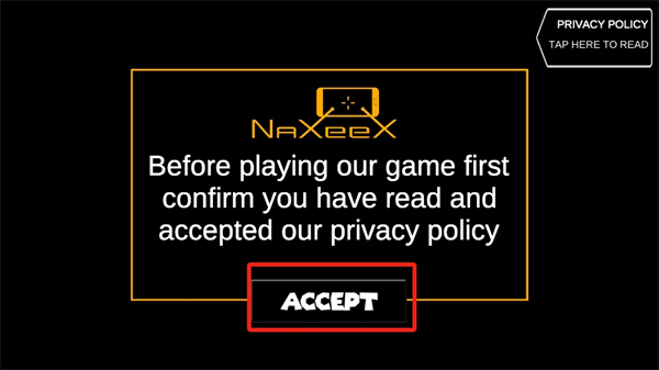 1、打開(kāi)游戲,在游戲進(jìn)入之前會(huì)有一個(gè)協(xié)議,點(diǎn)擊【accept】同意協(xié)議,然后就可以進(jìn)入到游戲環(huán)節(jié);