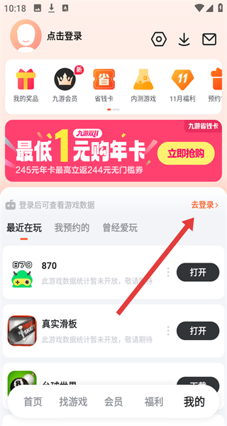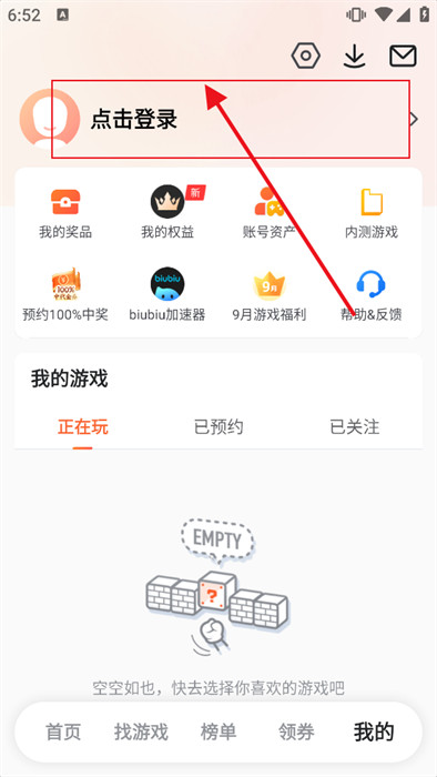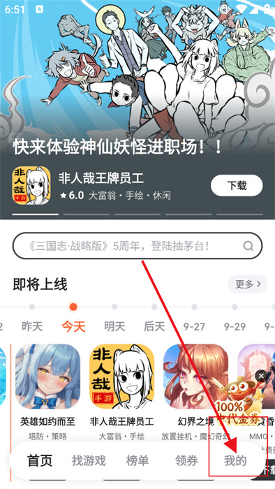 2、隨后會(huì)看到首頁(yè),這里包含了很多網(wǎng)絡(luò)上熱門的游戲,并切換到【我的】;