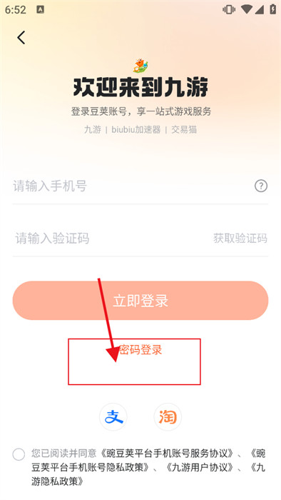 4、點(diǎn)擊下方【密碼登錄】,就能切換到賬號(hào)密碼登錄的模式,如下圖所示。