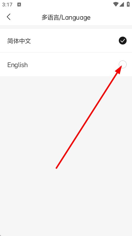 4、在多語(yǔ)言選擇界面,點(diǎn)擊選擇English或其他所需語(yǔ)言,即可完成語(yǔ)言設(shè)置。