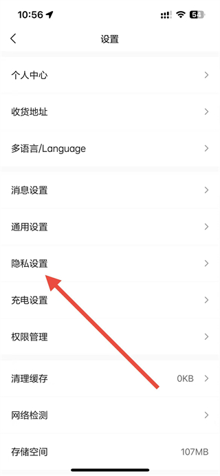 2、在設(shè)置頁(yè)面,點(diǎn)擊隱私設(shè)置選項(xiàng),進(jìn)入隱私設(shè)置頁(yè)面。