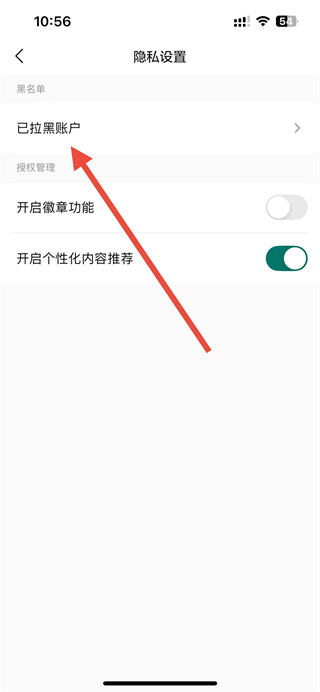 3、在隱私設(shè)置頁(yè)面,點(diǎn)擊已拉黑賬戶(hù)選項(xiàng),進(jìn)入黑名單頁(yè)面。
