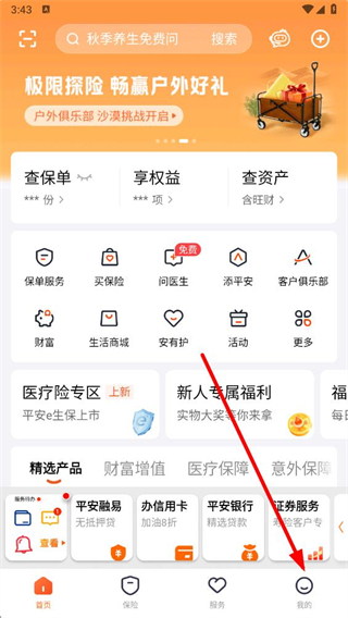 1、打開(kāi)平安金管家app,點(diǎn)擊底部導(dǎo)航欄中的我的選項(xiàng)。