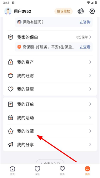 2、在我的頁(yè)面,點(diǎn)擊我的收藏選項(xiàng),進(jìn)入收藏頁(yè)面。