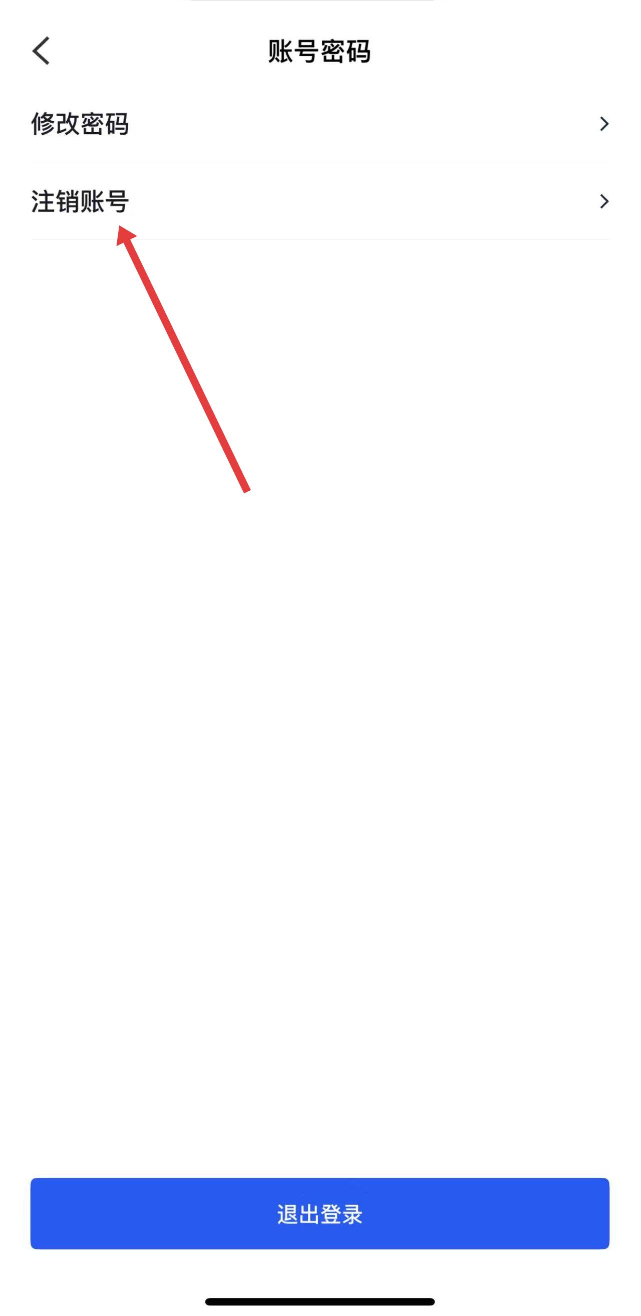 3、進入賬號密碼頁面后,點擊注銷賬號選項。