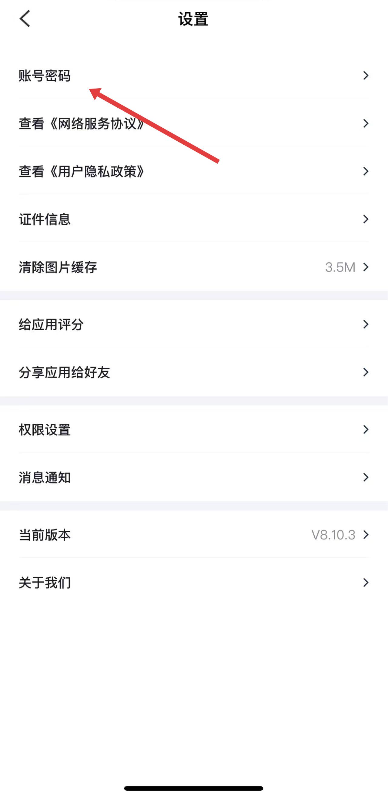 2、在設(shè)置頁面中,點擊賬號密碼選項。