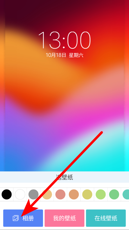 4、在彈出的選擇中,點(diǎn)擊相冊(cè),從相冊(cè)里挑選喜歡的圖片,即可設(shè)置為壁紙。