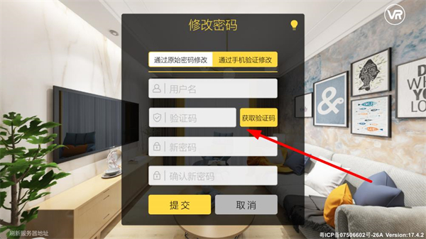 3、在手機(jī)驗(yàn)證修改頁面,輸入用戶名,獲取驗(yàn)證碼,依次輸入新密碼,點(diǎn)擊提交按鈕,完成密碼重置操作。
