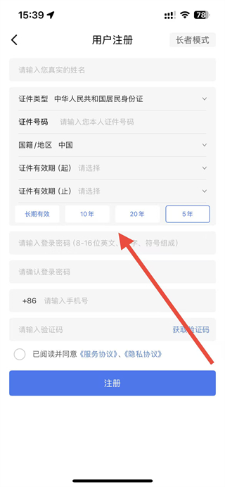 4、在用戶注冊(cè)頁(yè)面填入信息后,勾選同意服務(wù)協(xié)議、隱私協(xié)議,點(diǎn)擊注冊(cè)按鈕,即可完成賬號(hào)注冊(cè)。