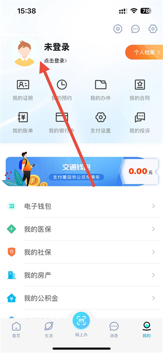 1、打開莆田惠民寶APP后,在底部導(dǎo)航欄點(diǎn)擊我的進(jìn)入個(gè)人界面。
