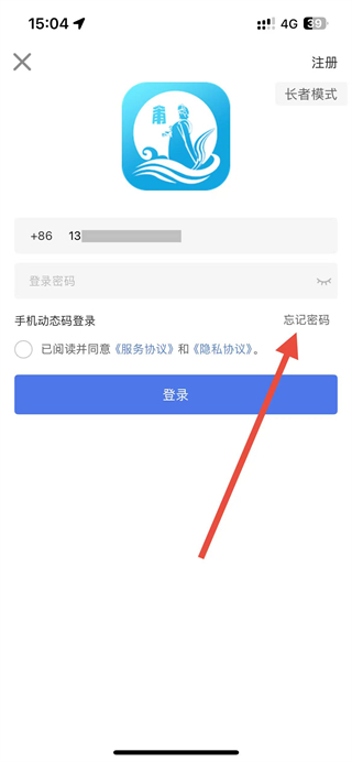3、在登錄頁(yè)面,輸入手機(jī)號(hào)后,點(diǎn)擊忘記密碼按鈕,進(jìn)入賬戶校驗(yàn)界面。