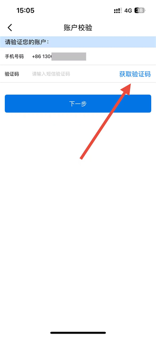 4、在賬戶校驗(yàn)頁(yè)面,點(diǎn)擊獲取驗(yàn)證碼輸入,按提示設(shè)置新的登錄密碼即可完成重置。