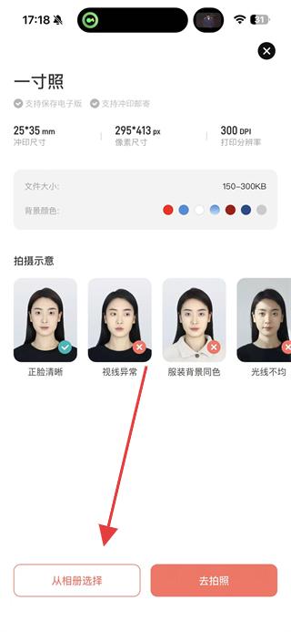 2、在一寸照頁(yè)面點(diǎn)擊從相冊(cè)選擇,進(jìn)入相冊(cè)選擇照片頁(yè)面。