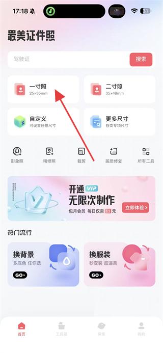 1、打開最美證件照APP,點(diǎn)擊一寸照,進(jìn)入一寸照設(shè)置頁(yè)面。