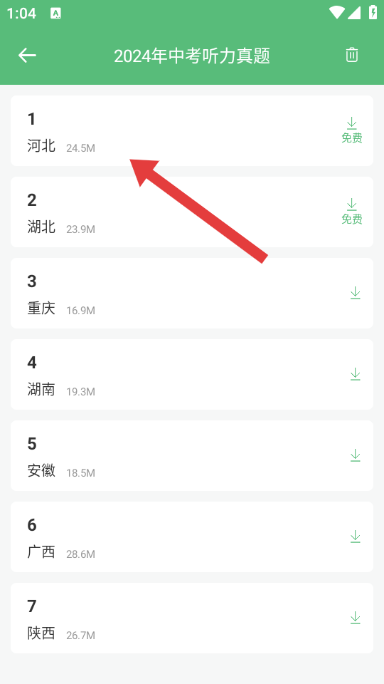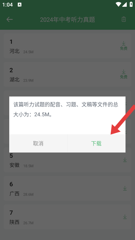 3、點擊下載,獲取該真題的配音、習題、文稿等文件,方便離線使用。
