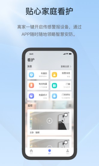支持通過APP遠程控制設備,查看設備報警信息等,實現(xiàn)智能安全的家庭看護