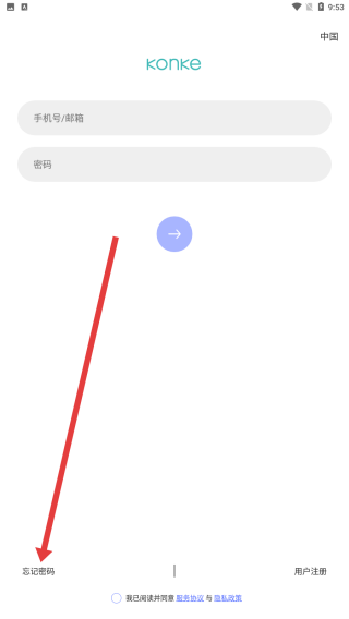 2、在控客智能登錄頁面,如果忘記了密碼可以點擊左下角的忘記密碼按鈕解決。