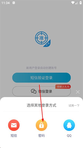 2、在彈出的登錄方式選擇中,點(diǎn)擊中間的密碼登錄選項(xiàng)。