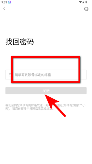 3、在找回密碼頁面,填寫賬號綁定的郵箱,點(diǎn)擊發(fā)送按鈕,按郵件指示完成密碼找回。