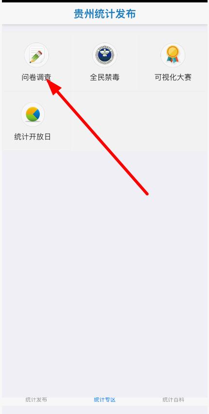 1、打開貴州統(tǒng)計(jì)發(fā)布平臺(tái),點(diǎn)擊底部統(tǒng)計(jì)專區(qū),進(jìn)入專區(qū)功能頁(yè)面,開啟問(wèn)卷操作。