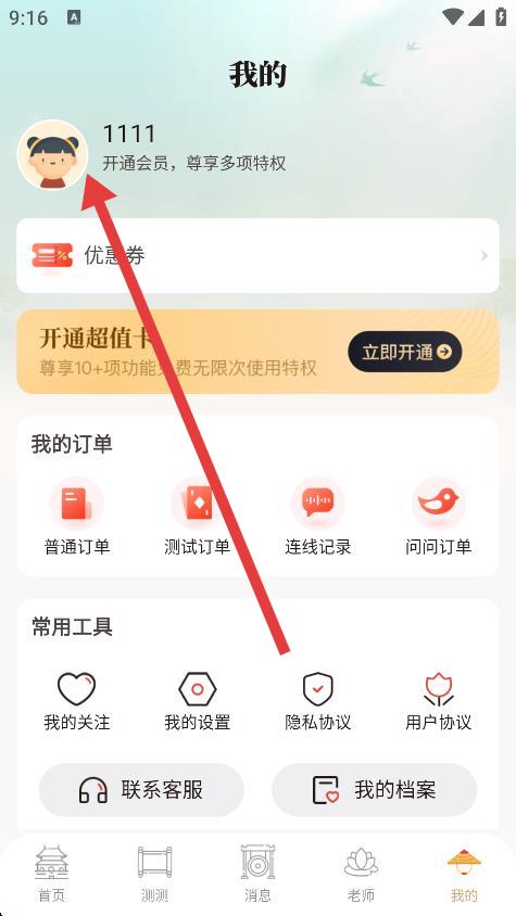 2、在個人頁面中,點擊頭像區(qū)域,進入我的資料頁面。