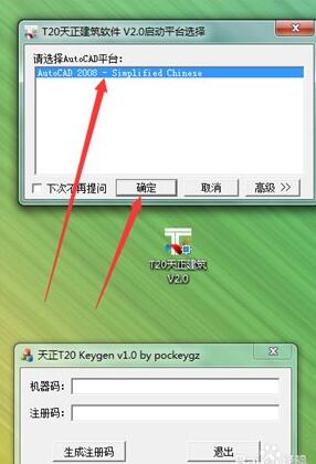 8.這里安裝的CAD2008來(lái)配套使用天正T20的,所以直接點(diǎn)擊確定即可。如果安裝了幾個(gè)版本的CAD的直接選擇你需要的CAD版本。