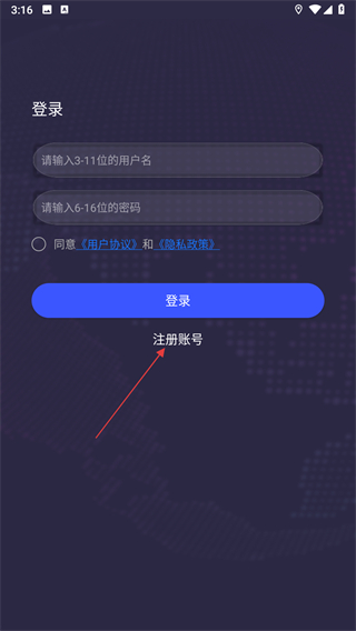 3、進(jìn)入登錄頁面后,點(diǎn)擊注冊賬號選項(xiàng)。