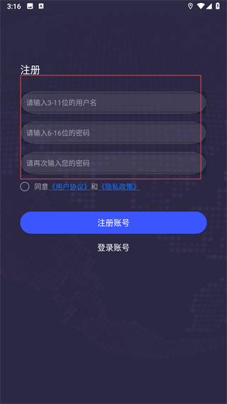 4、在注冊頁面,依次下列信息,點(diǎn)擊注冊賬號按鈕即可。