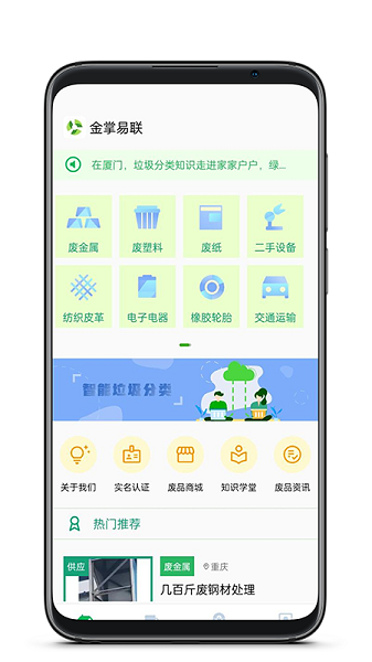 金掌易聯(lián)客戶端線上平臺(tái)的出現(xiàn)讓廢品回收更加便利,通過(guò)線上交流的方式來(lái)提高買賣雙方的溝通效率,在這里你還能了解到關(guān)于垃圾分類的知識(shí)。不管是要買廢品還是賣廢品,這里都給出了對(duì)應(yīng)的服務(wù)專區(qū)。