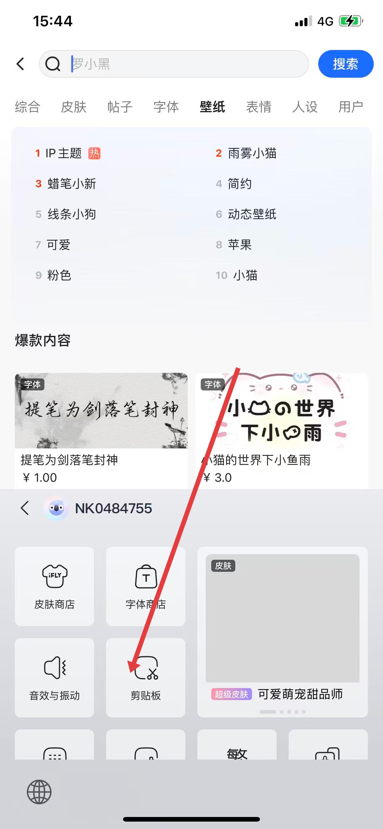 2、在彈出的菜單中,找到并點擊剪貼板選項。