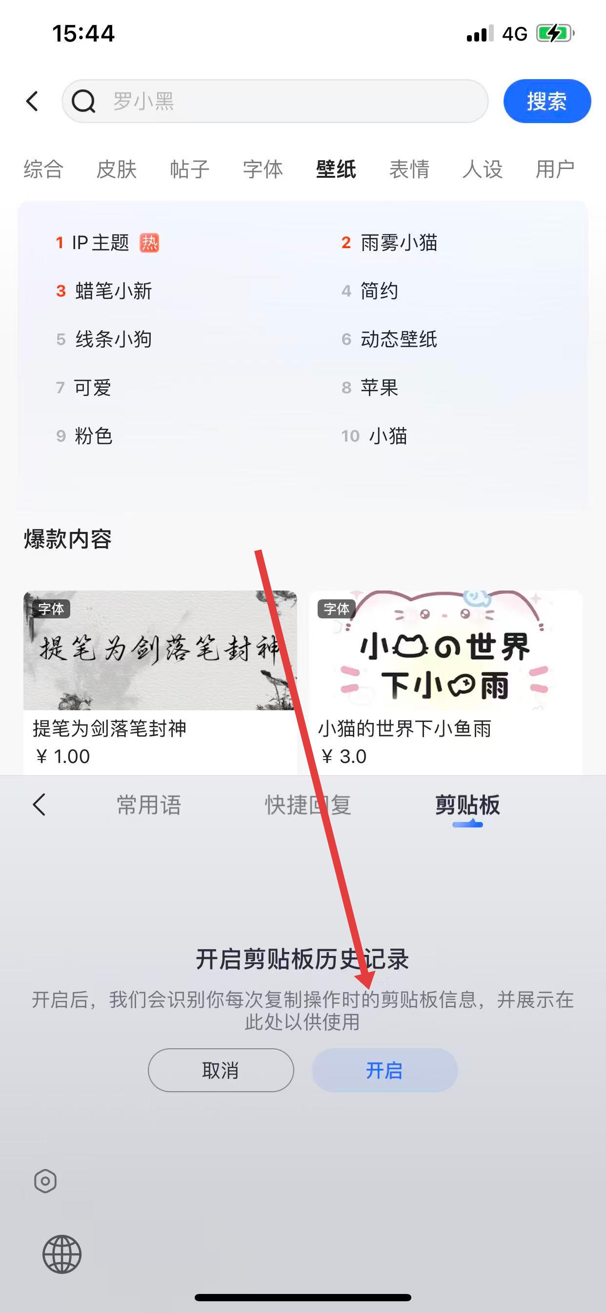 3、進入剪貼板頁面后,點擊開啟按鈕,即可開啟剪貼板歷史記錄功能。