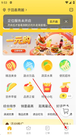 1、打開(kāi)急先蜂外賣,點(diǎn)擊底部導(dǎo)航欄我的選項(xiàng)。