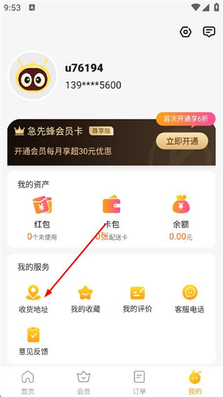 2、在我的頁(yè)面中,找到并點(diǎn)擊收貨地址選項(xiàng)。