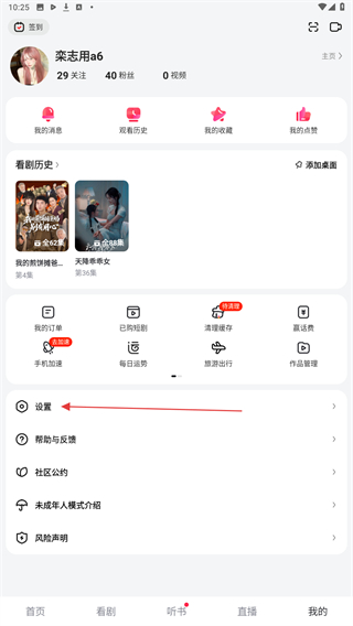 2、進入我的界面內(nèi),用戶需點擊下方設(shè)置的功能按鈕。