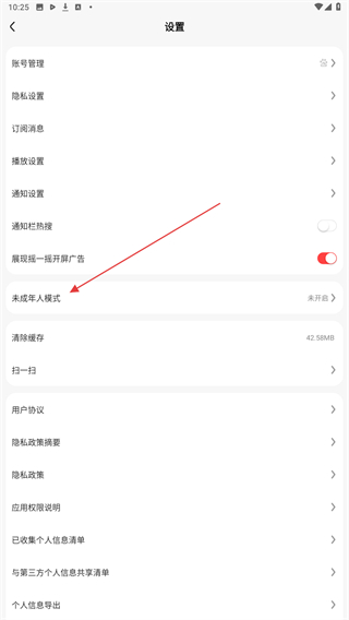 3、進入設(shè)置的頁面內(nèi),向下拉動點擊未成年人模式的按鈕。