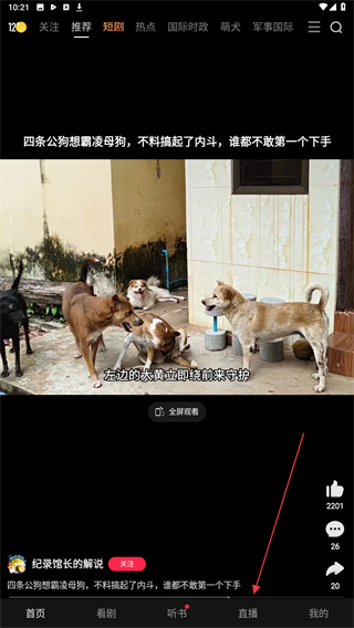 1、啟動好看視頻的APP,進入時點擊下方直播的標簽。