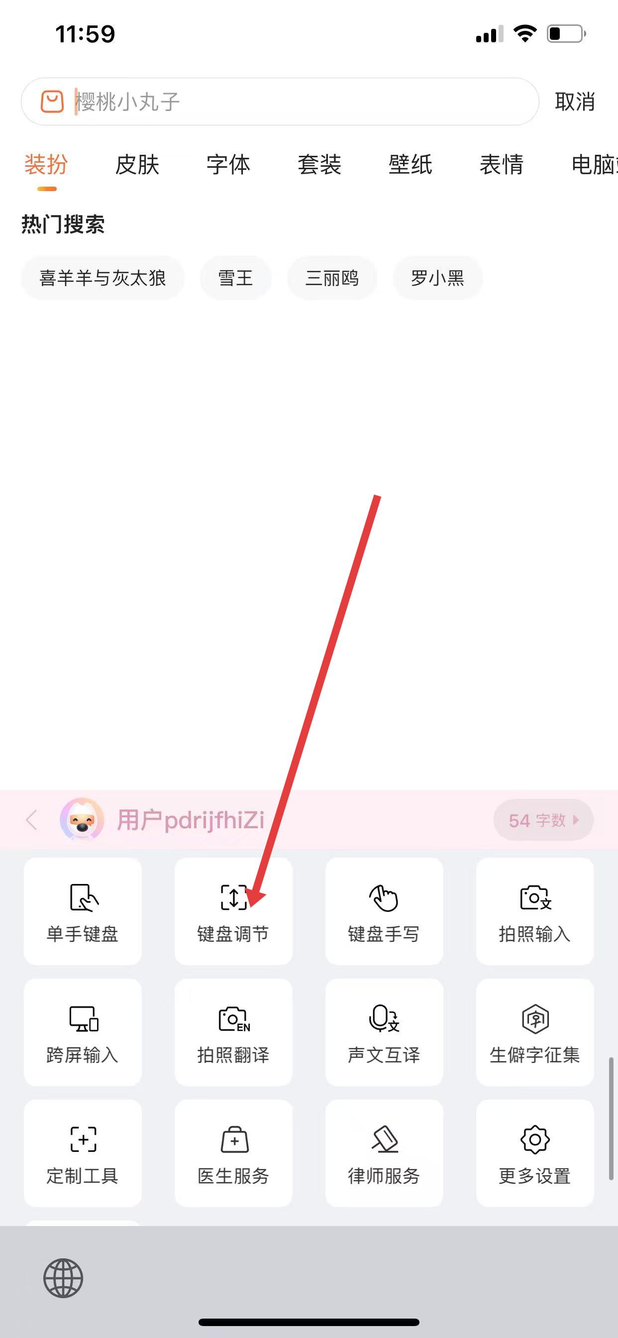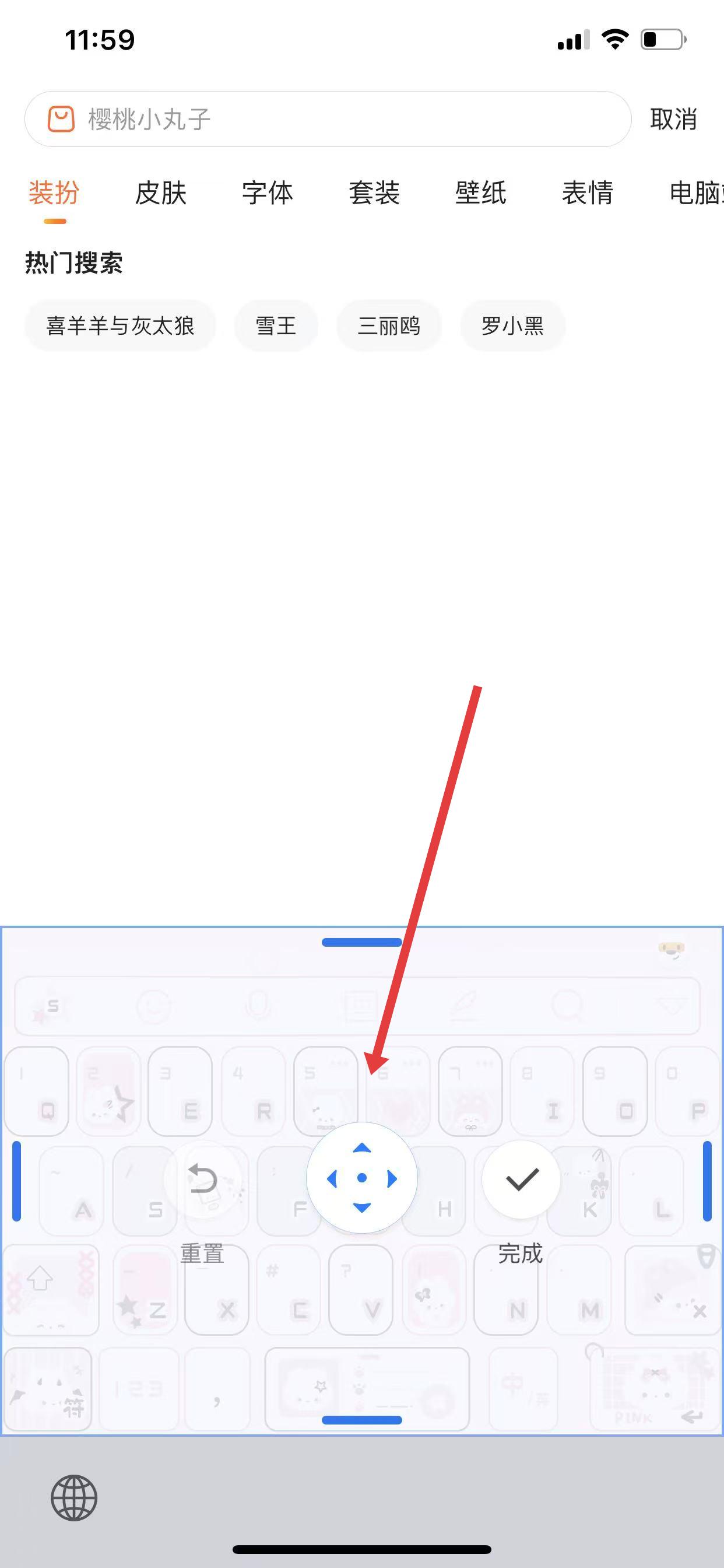 3、出現(xiàn)可調(diào)節(jié)的鍵盤邊框,按住調(diào)節(jié)按鈕,拖動即可調(diào)整鍵盤大小。