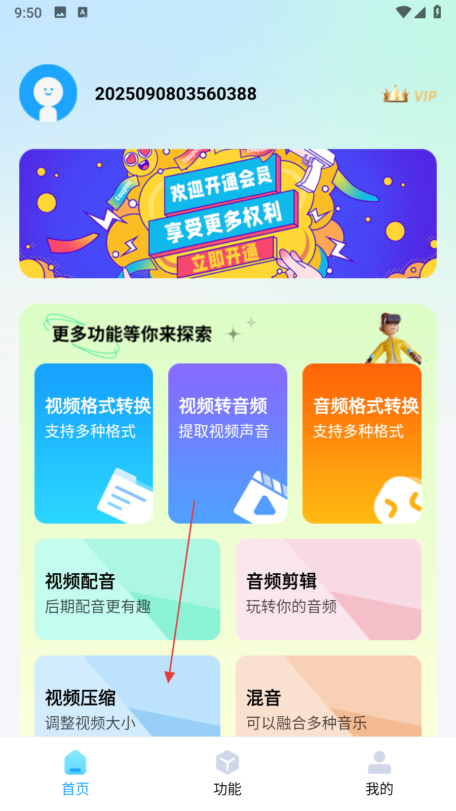 5、視頻轉(zhuǎn)音頻:視頻一鍵轉(zhuǎn)換mp3文件操作簡單直接。