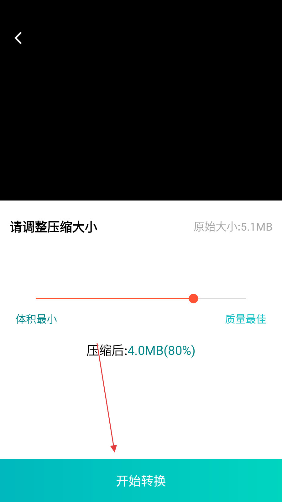 3、在壓縮參數(shù)設(shè)置頁面,拖動請調(diào)整壓縮大小的滑塊,調(diào)整視頻壓縮后的體積與質(zhì)量平衡,設(shè)置完成后點擊開始轉(zhuǎn)換按鈕。