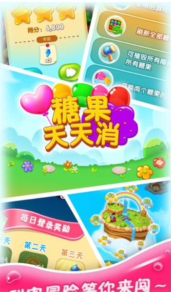 《糖果天天消》是一款集休閑益智于一體,充滿可愛畫面風(fēng)格的游戲,也是一款唯美夢幻的女性休閑手機(jī)游戲!