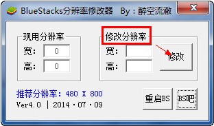 使用BlueStacks分辨率修改器前先運行"安卓模擬器BlueStacks",再點擊“BlueStacks分辨率修改器.exe”啟動分辨率修改工具